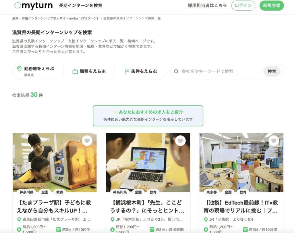 長期・有給インターンにフォーカスした検索サイトの滋賀ページ。