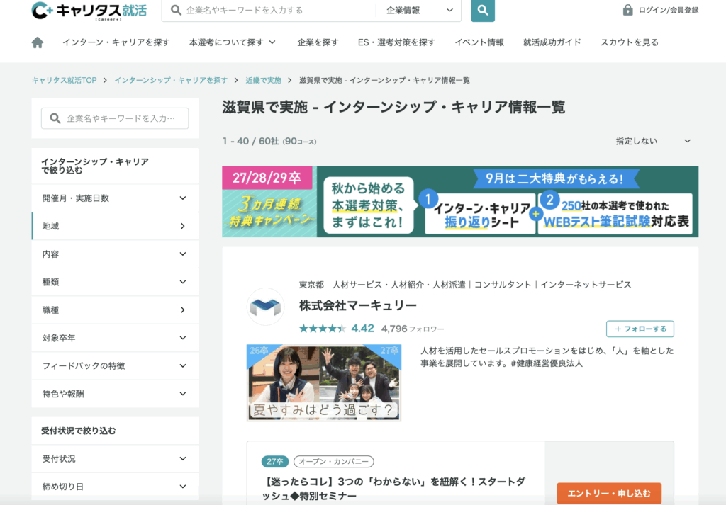 大学のスケジュールに合わせて開催月や締切で追いかけやすく、学年が上がるほど増える“締切管理”に強いのが特長。滋賀での比較検討を網羅的に行う起点として有効です。